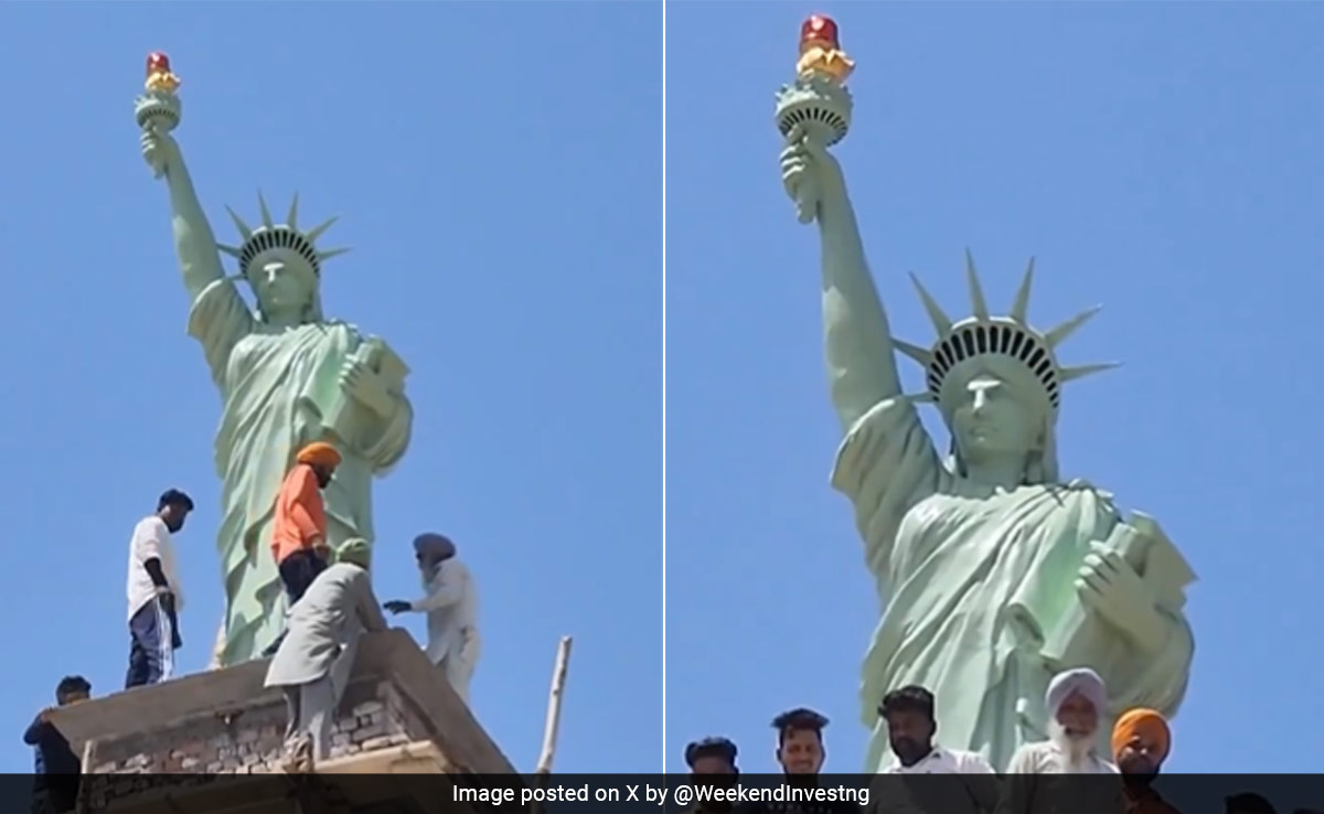 The amusing video, shared by X user Alok Jain, opens to show locals placing the replica on the building's roof. The video then zooms out, revealing the entire structure along with a crane stationed at the construction site. Sharing the video on X, Mr Jain wrote, "Somewhere in Punjab the THIRD liberty statue is installed."