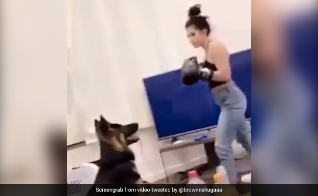 An investigation has been launched in Idaho after a video of a woman 'boxing' a dog went viral online, sparking outrage among viewers. In the shocking Snapchat video, which later made its way to other social media platforms, a woman can be seen punching a German shepherd's head. Dressed in workout gear and boxing gloves, she is seen repeatedly hitting the dog's face.