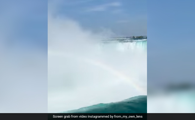 The viral video shows a spectacular sight of falling water and the formation of a rainbow in between the white froth all around.