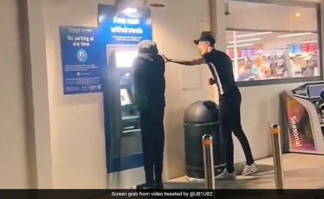 From the description mentioned in the caption, it is clear that the video is from the UK and it was shot outside a British retail bank, Tesco's cashpoint.