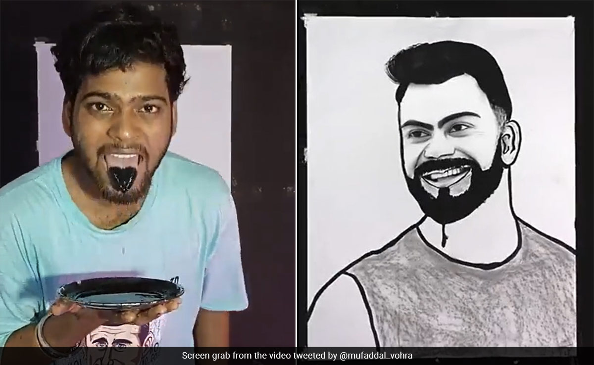 A video posted by Mufaddal Vohra on 'X', formerly Twitter shows an unidentified artist man making Virat Kohli's portrait by using the tip of his tongue on a canvas.