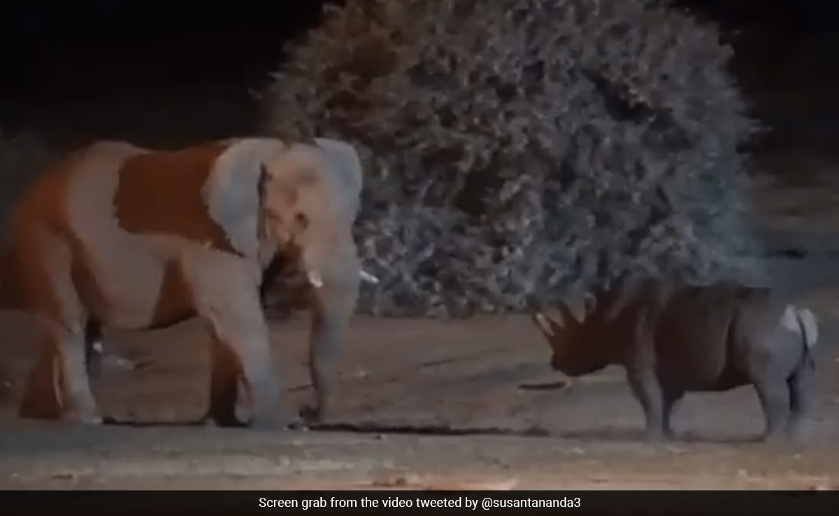 A video going viral on social media shows a fight between an elephant and a rhinoceros. The location where the video has been shot is not known, but shows the raw power of two of the most dangerous species in the animal kingdom. The clip, which appears to have been shot in night, has been shared by several Indian forest officers (IFS) on Twitter and caught the attention of many users. They compared it with the David vs Goliath battle.