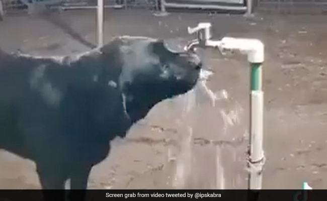In the middle of this, a person shared a video of a cow drinking water from a tap.