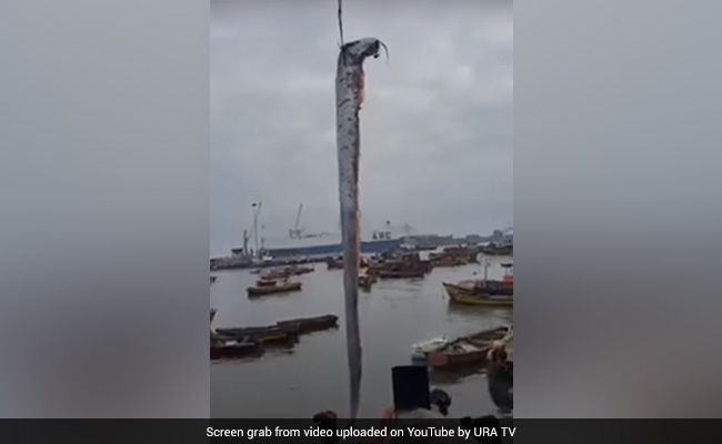 The clip shows the long, bony fish being hooked on the head as the workers transferred it to the land. According to Daily Star, the fish, identified as Oarfish, measured more than five metres long (16 foot).