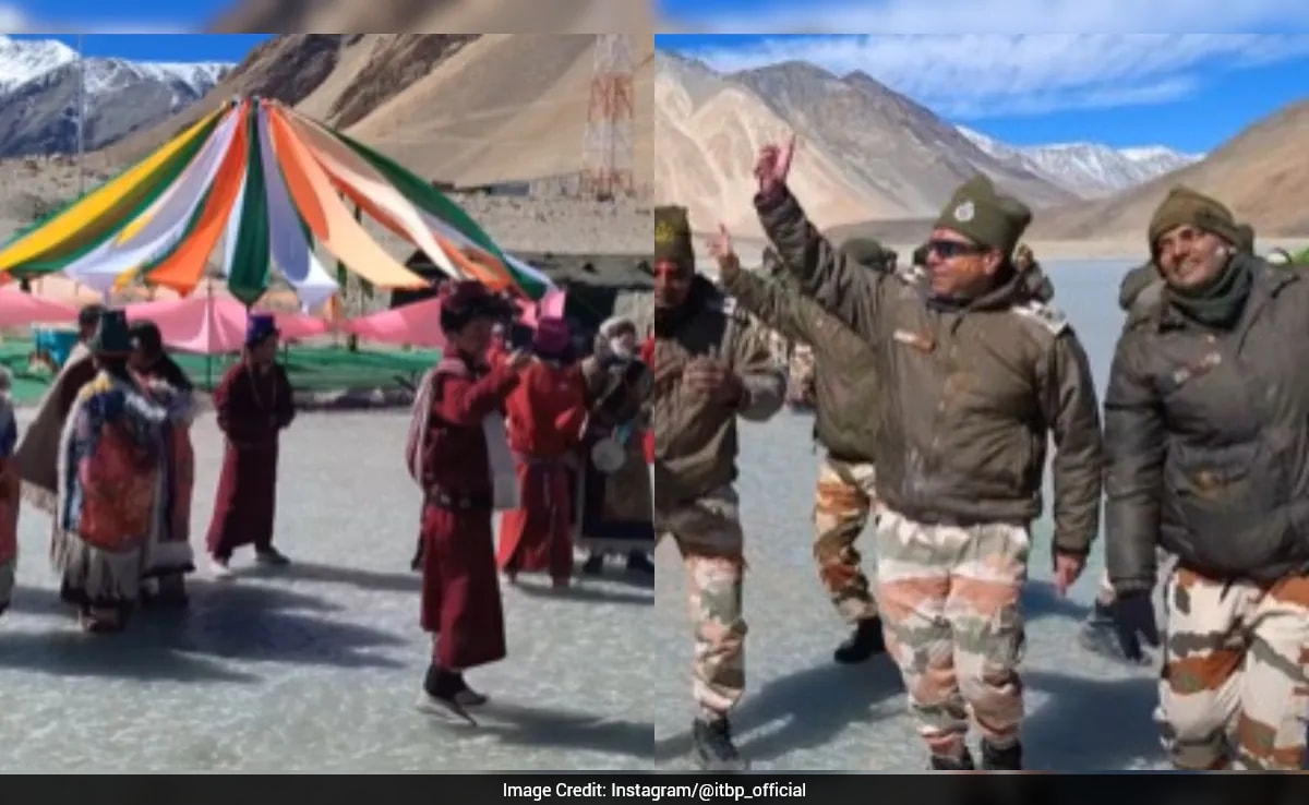 - ITBP troops celebrated Holi with border villagers near frozen Pangong Lake at 14,300 feet