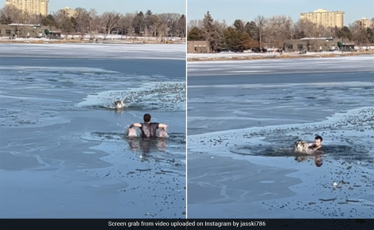 A heartwarming video of a man risking his life by jumping into a half-frozen lake to rescue a drowning dog has gone viral on social media. The video, taken at Sloan Lake in Colorado, USA, shows the brave man fearlessly jumping into the lake to save Loki, a husky dog who was struggling to get out of the freezing water.