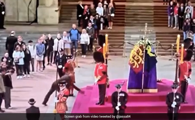People from across the world paid their tributes to Queen Elizabeth II during her funeral on Monday. Britain's longest-serving monarch died on September 8. Thousands flocked to central London to queue beside the coffin of Queen Elizabeth at Westminister Hall. The mourners, after waiting for hours paused in front of the coffin to pay their last respects. While some bowed their heads, others kneeled down to pray. Now, a video has surfaced on the internet of one of the mourners paying his last respects in a unique way.