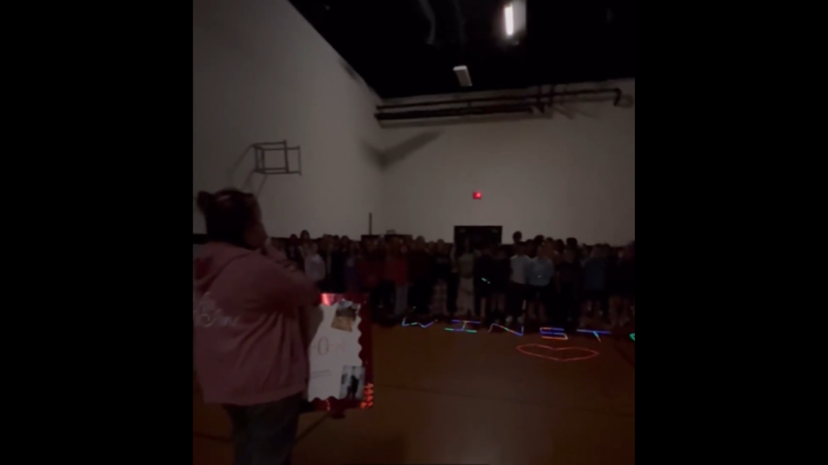 The video unfolds as the teacher walks down a hallway, unaware of the surprise awaiting her. Upon entering a room, she is greeted by a heartwarming sight: her son's name, Winston, spelled out with glowing sticks. The students gathered around then started singing 'Stand By Me', their voices filled with emotion and solidarity.