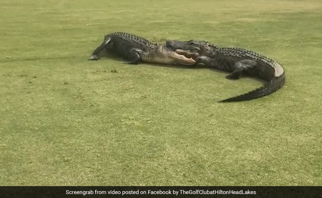 According to Fox 35, Matthew Proffitt was golfing with friends at the course when his group came across the sight of two alligators locking jaws. His video, which was posted by the golf course on Facebook last Thursday, shows the two reptiles thrashing about on the greens. "They would lay still for a few minutes, with their jaws locked on each other, and then try to roll or shake," Mr Proffitt said. "The fight went on for about two hours," he added.