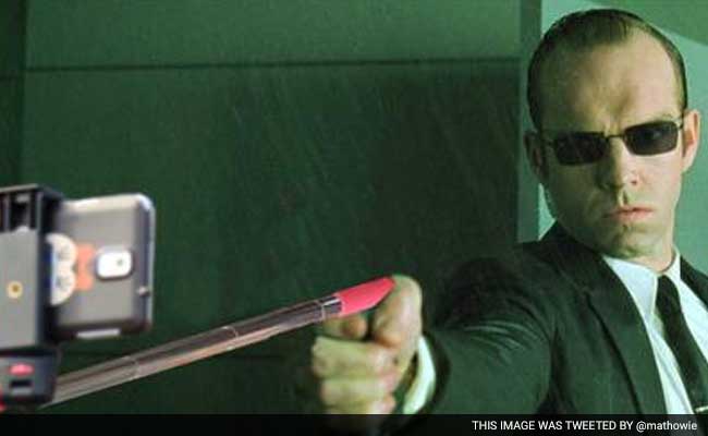 Agent Smith from The Matrix knows the importance of a selfie stick.