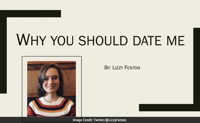 Here's a love story told in six PowerPoint slides and two tweets. A modern love story, if you will. Lizzy Fenton, a student at the University of Minnesota, shared a PowerPoint presentation she put together, supposedly to convince her crush to go out with her in a tweet on March 28 but it suddenly went viral this week. Titled "Why You Should Date Me," the six-slide presentation isn't like anything you may have seen before. Ever.