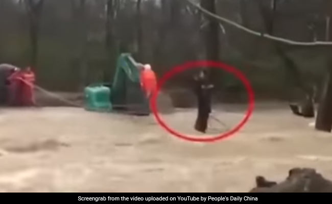 A woman survived a raging flood by clinging on to a tree even as water from the Manshuiqiao river gushed below her. The incident took place in China's Jiangxi province on January 8. She was rescued when a fire station in Jiangxi received a report about the woman hanging onto a tree and brought an excavator to the site to help her out.