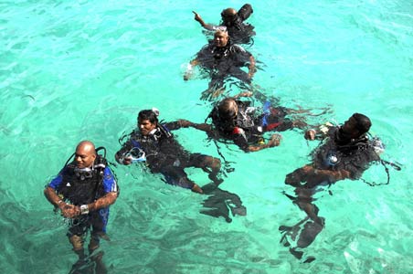 The ministers dressed in scuba suits would arrive by speed boats to the island and then dive to the Cabinet rendezvous.