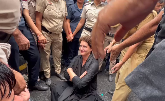The dominant image of the Congress's 'Black Friday' anti-price rise protests was of black-clad Priyanka Gandhi Vadra sitting on the road, surrounded by a police posse. Before that, she was seen marching energetically, then clambering over police barricades, being forcibly pushed back by women cops, and finally being dragged away into a waiting van. Rahul Gandhi was also seen raising slogans and being strong-armed into police custody.