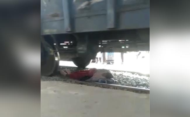The video of the incident, which has gone viral on social media, shows the train passing over the woman as she lies on the track calmly to avoid getting hurt.