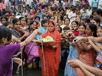 The offering is traditionally made before the sunset and many families were seen giving their 'arghya' in ponds at their localities.