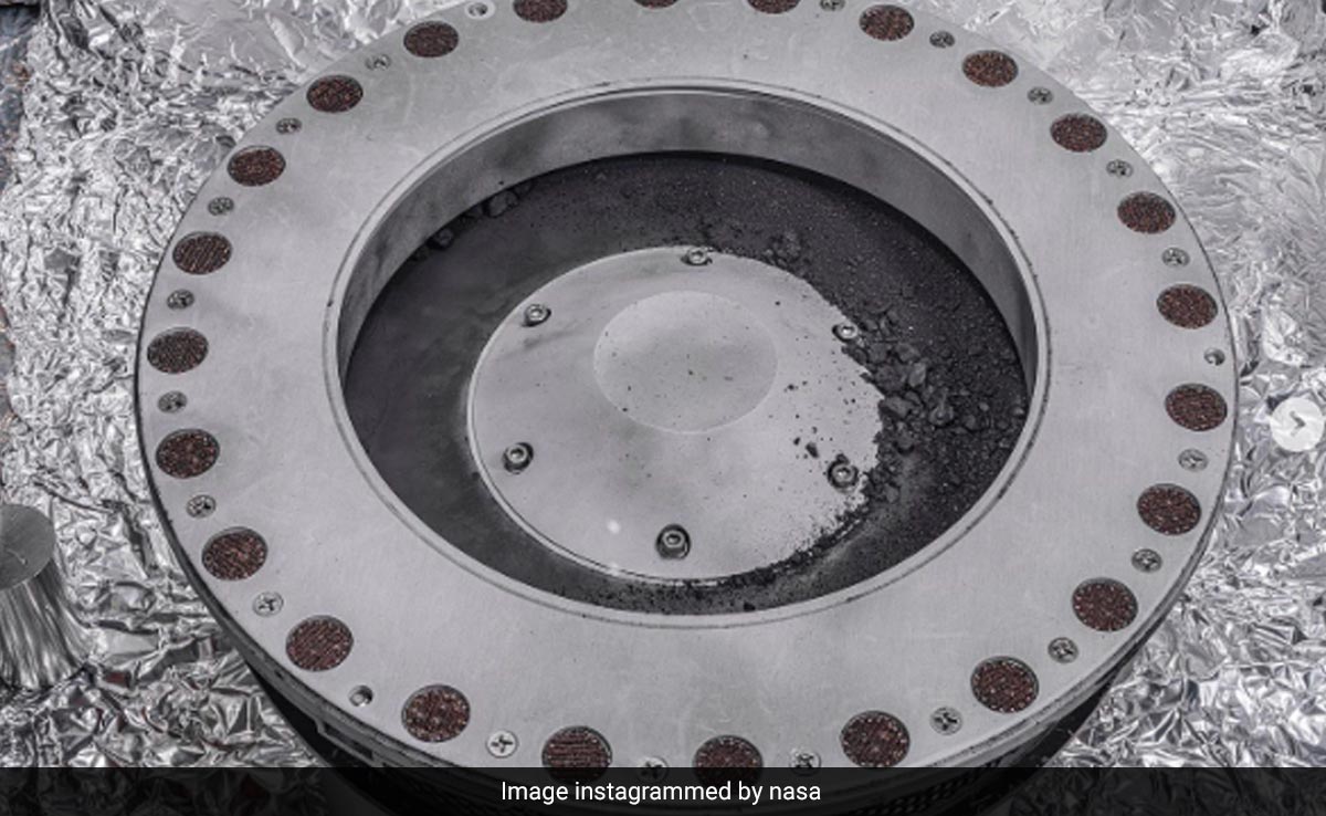 The caption of the post on Instagram reads, "Parts of ancient space rocks may contain clues about how rocky planets, including Earth, formed." The image shows pieces collected by the OSIRIS-REx spacecraft from the asteroid Bennu.