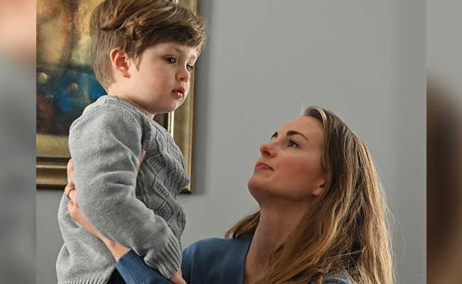 Today he is a mischievous, smiling toddler with a thick shock of light-brown hair, who never tires, playfully tormenting the family's puppy, Henry.
