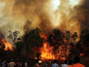 A fire was blazing this evening in the thick forests near the famous Tirupati temple in Andhra Pradesh.