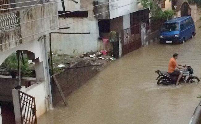 A view of a flooded street after heavy rains in Puducherry. (PTI Photo)