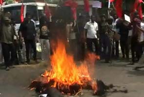 Pro-Tamil activists in Madurai burnt an effigy of UPA's Presidential candidate Pranab Mukherjee ahead of his visit to Chennai today.