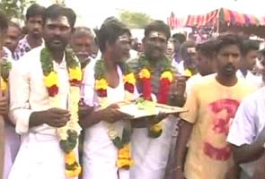 At his burial today, his friends and supporters declared him a martyr. Villagers had put up his pictures on the streets. Many wore T-shirts that called Ilavarasan a 'prince of love'.
