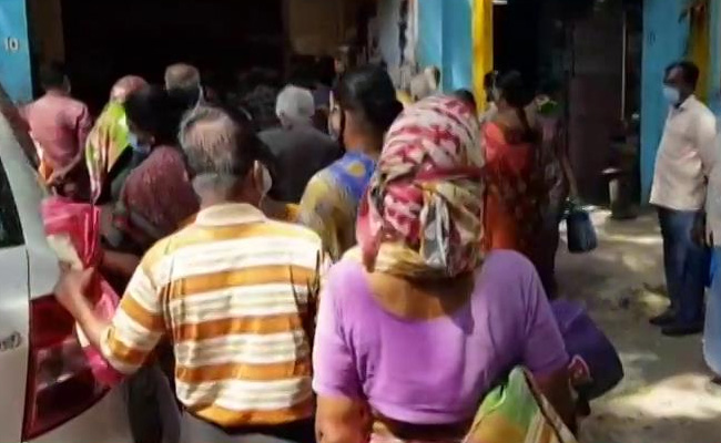 55-year-old Lakshmi, a domestic help, came in to collect free rice as early as 7 am. She has been without work or pay for the third week now. When asked about the risk of being part of a crowd, she said, "We have to eat, right? We can't buy anything now. If we have income at least we can buy something."