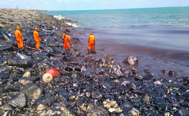 Coast Guard ship Varada along with a helicopter integrated with pollution control equipment has sailed to clear the oil slick.