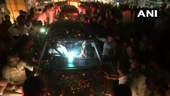 She reached Kanchipuram around midnight where the leader was welcomed by the party cadres.