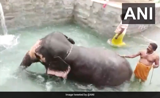 A video of an elephant enjoying a dip in a temple pond in Tamil Nadu went viral within hours of being uploaded on social media.