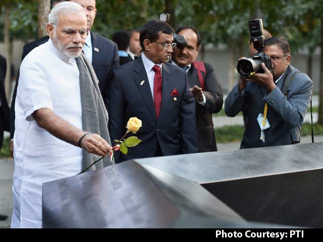 The Shashi Tharoor-led Indian delegation, which is visiting the US to expose Pakistan's role in terrorist acts on Indian soil, visited the memorial for the 9/11 attacks that had shaken the world.
