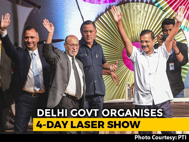 Amid cheers by amazed spectators, Delhi's famed Connaught Place on Saturday was witness to a mega laser show organised by the Arvind Kejriwal government to encourage people shun crackers to cut down pollution in the national capital.