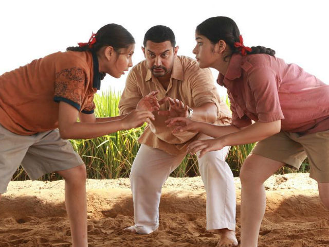 In the new Dangal poster, Aamir Khan takes the centre spot and is flanked by both the younger and older versions of the Phogat sisters, Geeta and Babita