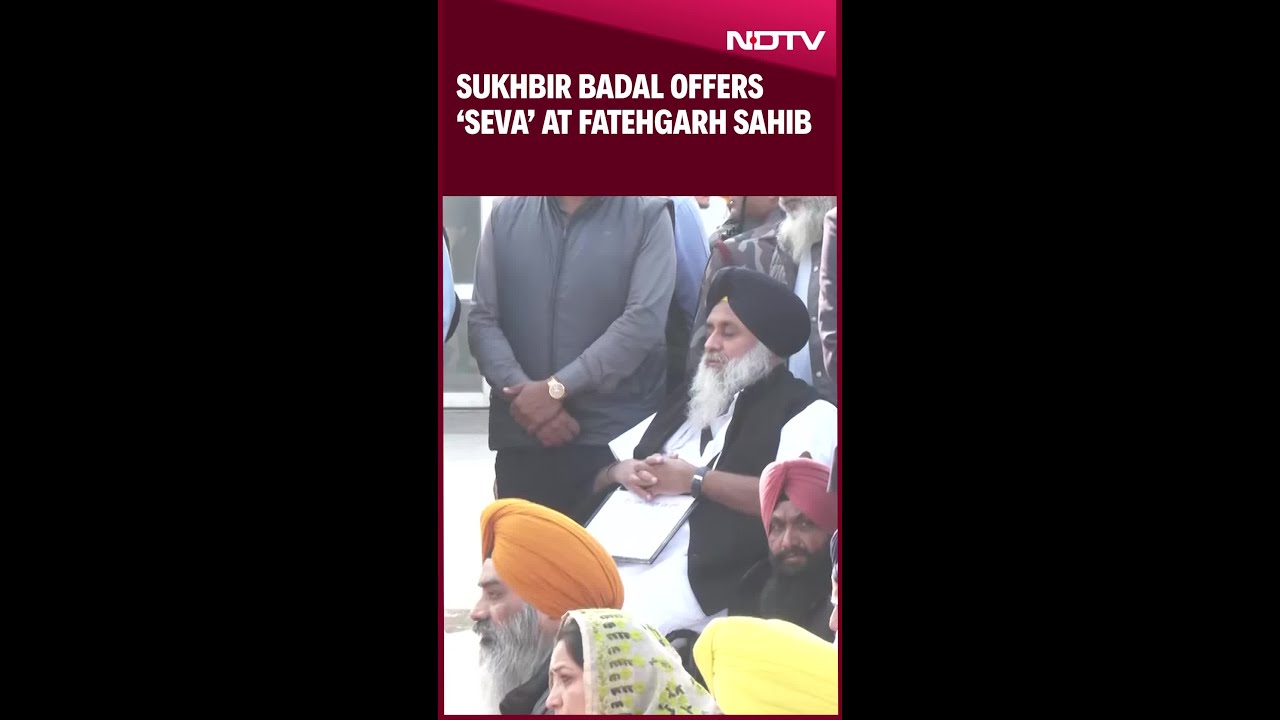 Shiromani Akali Dal leader Sukhbir Singh Badal on Saturday performed the duty of 'sewadar' outside a gurdwara in Punjab's Fatehgarh Sahib amid tight security.