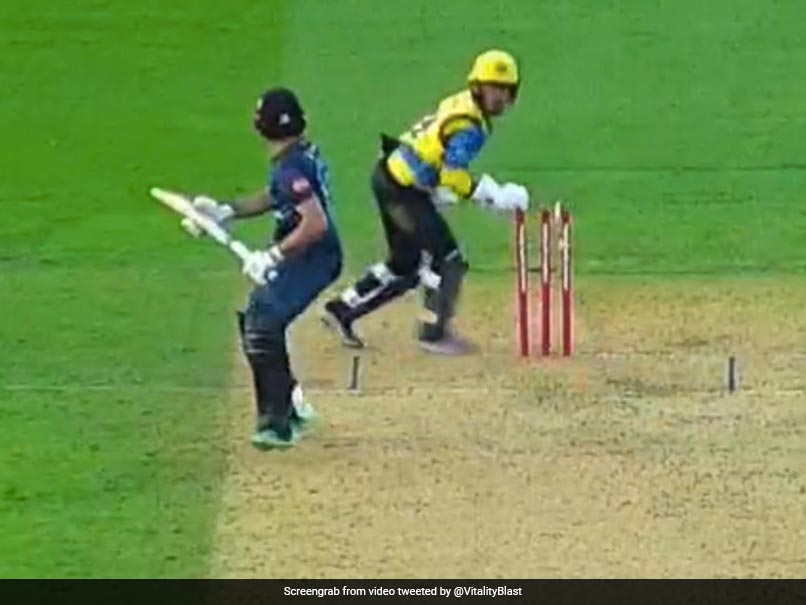 Pakistan vs England: Haider Ali played a pull shot off Richard Gleeson and it hit umpire Aleem Dar on the thigh as he tried desperately to get out of the way.