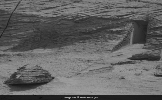 One of the most recent images captured by National Aeronautics and Space Administrations (NASA's) Curiosity rover on Mars shows an unusual structure in the rocks that looks like a neatly carved out doorway nestled on the Red Planet.