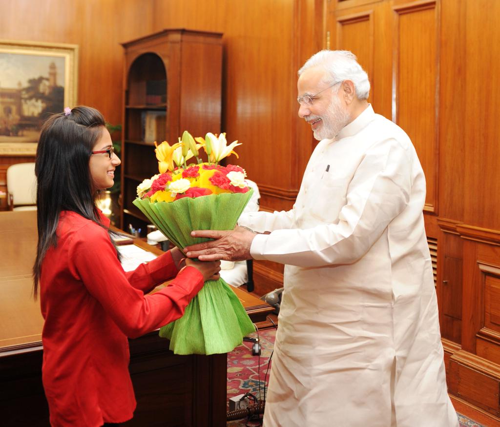 Prime Minister Narendra Modi Meets Girl Who Won Gita Contest