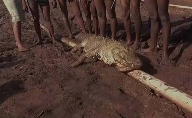 Local farmers of a village in Karnataka's Bagalkote district, on Monday, stripped down and crawled into the mud, gingerly approaching a crocodile trapped in slush near the Krishna river. The crocodile, which lay motionless, was surrounded by villagers --several of them - who cautiously waded into the mud. It was dead.