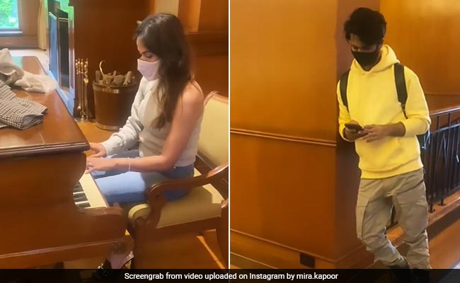 Mira Rajput shared a video of herself playing the instrument with Shahid Kapoor in the background.