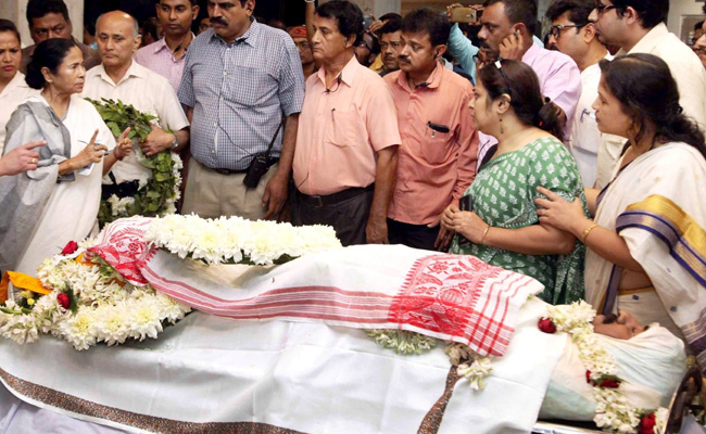 Thousands lined up on the road on Wednesday and her evergreen Bengali songs were played over the public address system as the body of legendary singer Sandhya Mukherjee was taken on its last journey.