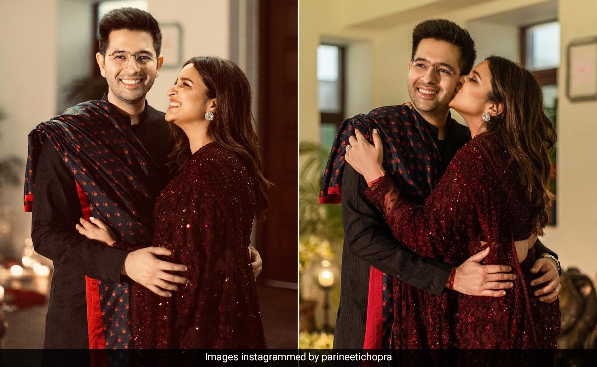 Parineeti Chopra And Raghav Chadha's Black And Red Ethnic Looks Are Decadent Enough To Ring In Their First Diwali