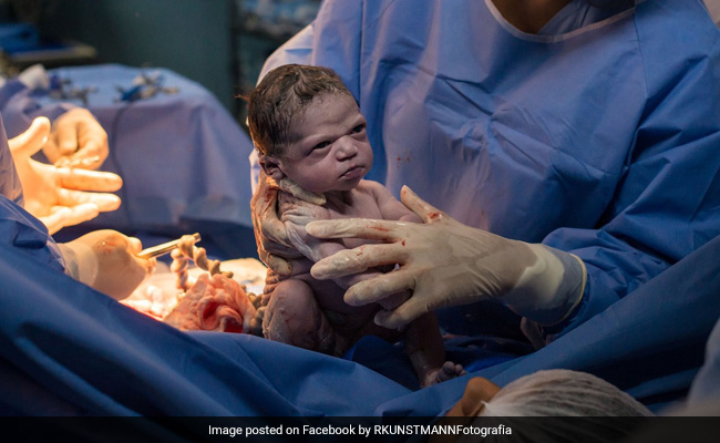 A picture that is going viral online shows a newborn baby girl glowering at her doctors - and the Internet can't get enough of it.
