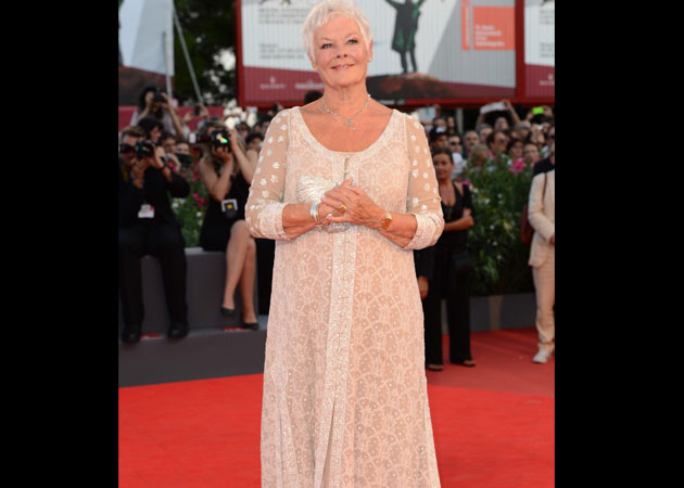 Judi Dench chose a pristine ivory gown defined by intricate Lucknowi chikan embroidery - a creation by Indian designer duo Abu Jani-Sandeep Khosla - for the red carpet of the Venice Film Festival.