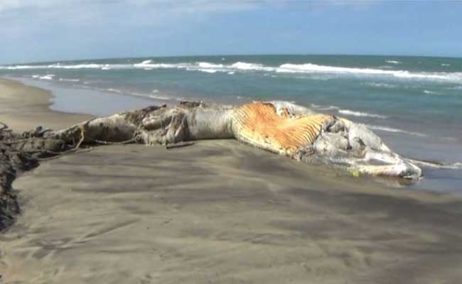 33-Feet-Long Whale Carcass Washed Ashore in Tamil Nadu