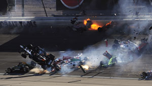 Two-time Indianapolis 500 winner Dan Wheldon died on Sunday after his car was catapulted into the air in a fiery, 15-car crash at the Las Vegas 300 IndyCar series finale.