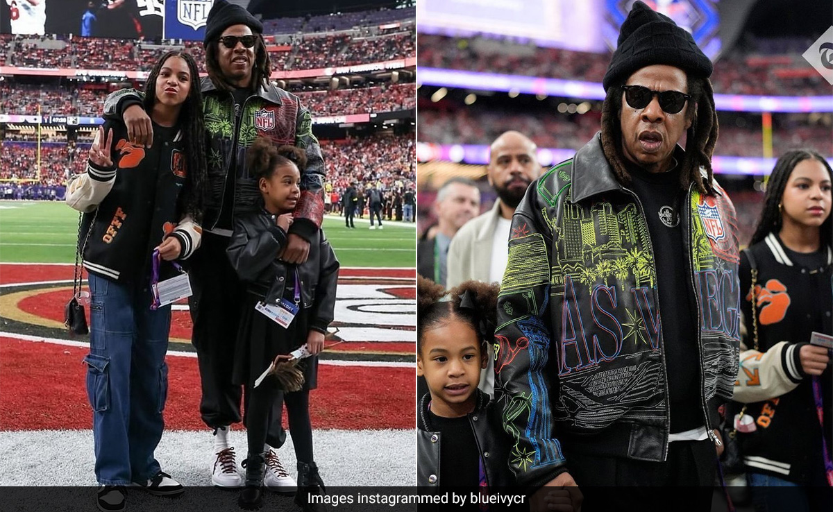 Jay-Z And Daughters Blue Ivy Carter And Rumi Triple The Fashion Quo In Trendy Varsity Jackets At Super Bowl 2024
