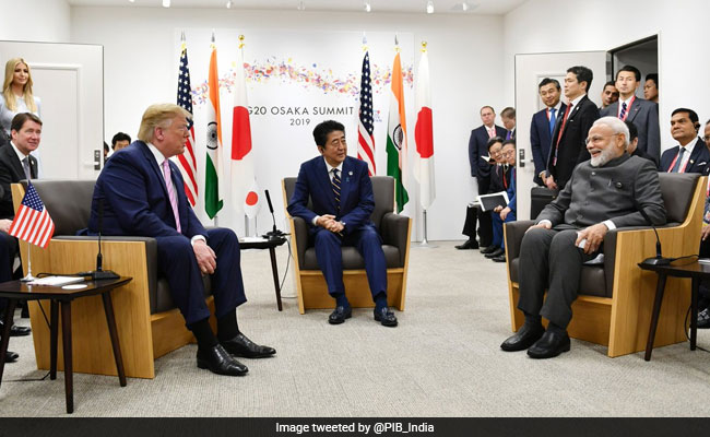 Prime Minister Narendra Modi held a "productive" trilateral meeting with US President Donald Trump and Japanese Prime Minister Shinzo Abe, and extensively discussed issues of the Indo-Pacific region, connectivity, and infrastructure development ahead of the formal opening of the G20 Summit in Osaka.
