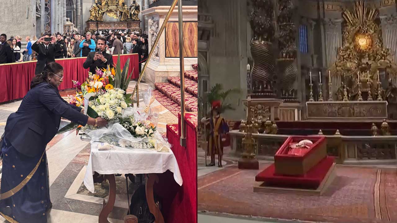 President Droupadi Murmu on Friday paid homage to Pope Francis at the Basilica of St Peter here.
