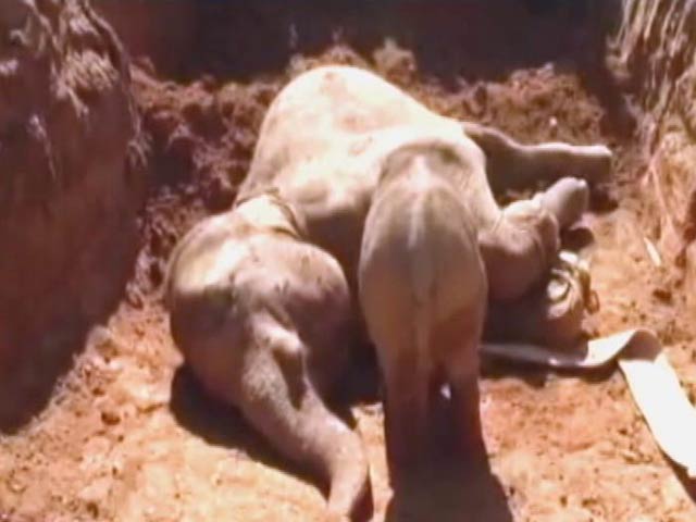 It is a sight that highlights the increasing man-animal conflict in India. An elephant calf in Assam mourned the death of his mother and refused to leave her side.
