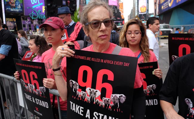 A ton of illegal ivory carved into decorative objects was destroyed in New York's Times Square today as US officials denounced poaching that kills thousands of elephants a year.